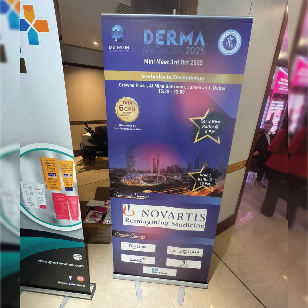 GAIA Healthcare was proud to participate as a Support Sponsor at the DERMA MeDeCon 2025 – Mini Meet, held on 03rd October 2025 at the Crowne Plaza, Dubai, Jumeirah. Themed “Clinical Dermatology, Dermato-Surgery & Aesthetics,” the event brought together dermatology experts, aesthetic practitioners, and healthcare innovators to discuss the latest trends, treatments, and scientific insights in skin health and beauty. Running from 04:00 PM to 11:00 PM, the evening offered a blend of lectures, workshops, and panel discussions, giving attendees the opportunity to earn 6 DHA CPD Points and engage in hands-on learning.